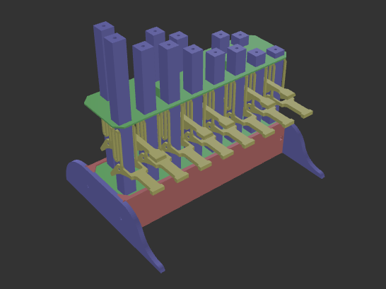 Next up was a which holds the entire octave of pipes. As it covered nearly my entire print bed and (likely due to slightly cooler edges of the bed) had a tendency to warp, I added a 0.2mm at the corners, which I broke and filed off after printing.